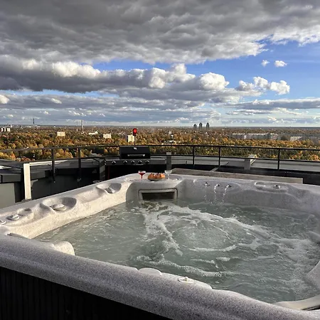 Гості можуть зупинитися в апартаментах Relax Penthouse And Spa Riga під час відвідування району Imanta в Різі. З вікон апартаментів відкривається вид на місто, і є тераса.